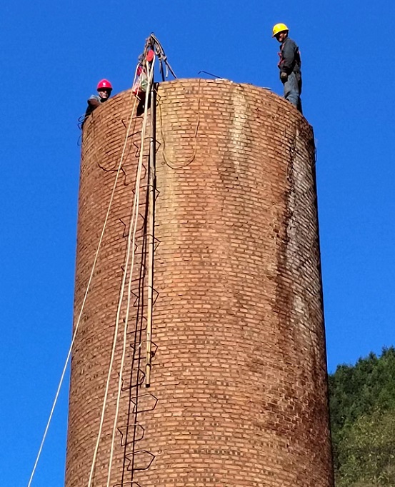 因為煙囪周邊場所受限,需要用到煙囪人工拆除的方法拆除磚煙囪筒壁結構進行破碎割裂。煙囪人工拆除長處是:施工振蕩小,安全可靠,即可保證安全,憑我公司以往拆除各類混凝土煙囪、磚混結構煙囪、冷卻塔等高聳構筑物的經歷,采用此技能施工即可縮短工期,也可下降危險。