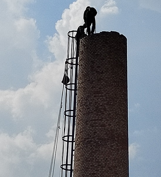 ②煙囪人工拆除:采取高空攀爬的作業(yè)登高到煙囪頂部,用拆除工具大錘、千斤行簡(jiǎn)體拆除,所拆磚塊要往煙囪內(nèi)部(或外壁)著落,在拆除時(shí)煙囪底部還要做好防護(hù)措施,預(yù)防有拆除的殘留。