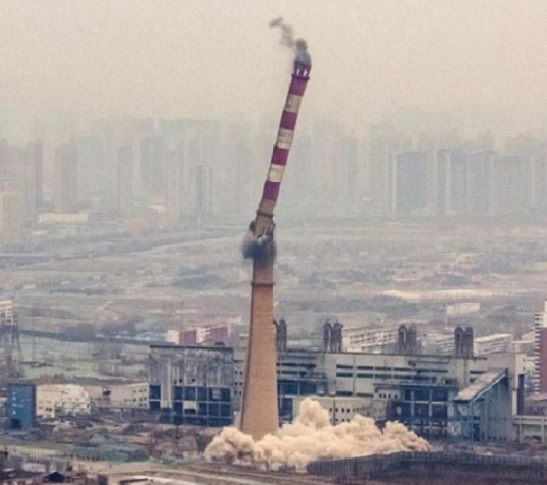 得知今早對江門紙廠煙囪進(jìn)行機(jī)械定向拆除,
