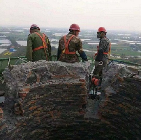 3、煙囪拆除前,應(yīng)仔細(xì)檢查爬梯腐蝕程度,不安全的地方進(jìn)行加固,以便施工上下。