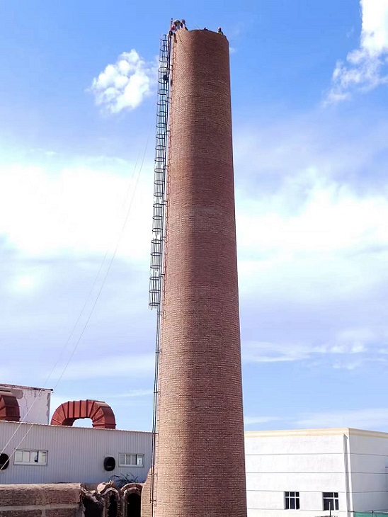 2、施工人員在丈量后進行對煙囪外殼和爬梯舊避雷針及支梯、導線進行初檢和清查。