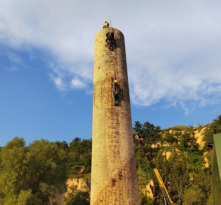 3、煙囪拆除前,應仔細檢查爬梯腐蝕程度,不安全的地方進行加固,以便施工上下。