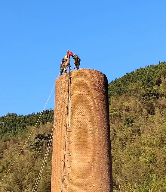 3、煙囪拆除前,應(yīng)仔細(xì)檢查爬梯腐蝕程度,不安全的地方進(jìn)行加固,以便施工上下。