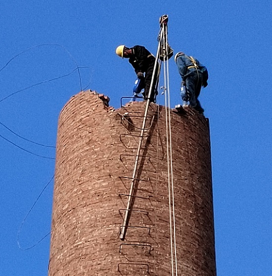 (三)高空工程:煙囪改造、煙囪清灰、煙囪檢查、煙囪探傷、煙囪裂縫修補(bǔ)、煙囪加箍加固、煙囪拆除加高、煙囪校正、煙囪更換內(nèi)襯、煙囪頂口修復(fù)、檢修或更換避雷設(shè)施、煙囪粉刷、輪窯、窯、煙囪抽煙力不夠等。