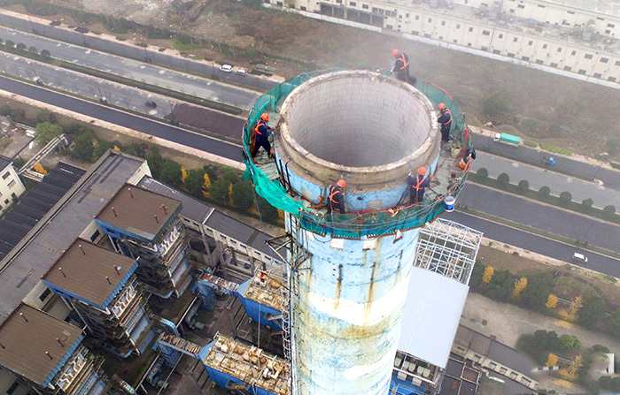 水泥煙囪人工拆除搭設(shè)封閉式安全防護(hù)