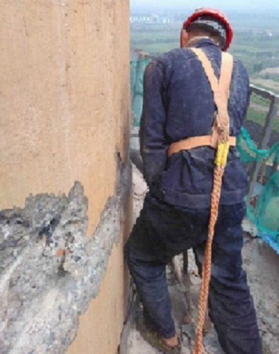 煙囪拆除人員工作攀登: