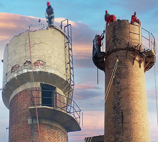 (二)高空拆除工程:各種煙囪拆除、水塔拆除(人工拆除、定向拆除)、鐵塔拆除、尿素造粒塔拆除、電視塔拆除、鐵截架拆除、高空砼框架拆除、及其它高難度高空拆除工程等