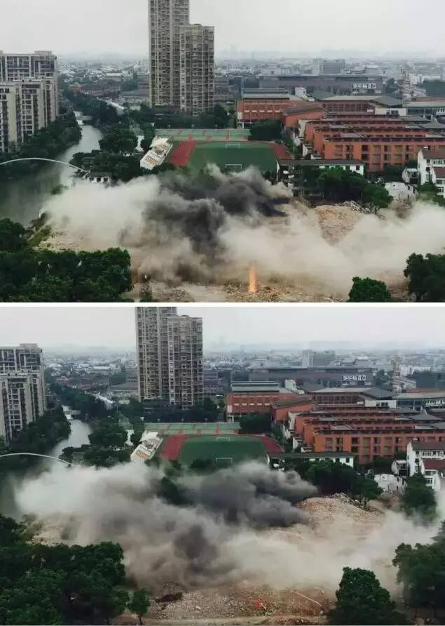 另外,煙囪爆破后倒塌的方向也被嚴格控制。據(jù)介紹,一期煙囪(東側(cè)老煙囪)倒塌方向為東側(cè),倒塌落地時間約11秒鐘;三期煙囪(西側(cè)新煙囪)倒塌方向為西偏北側(cè),倒塌落地時間約12秒鐘;冷卻塔基本原地坍塌,坍塌方向為西側(cè),坍塌落地時間約7秒鐘。