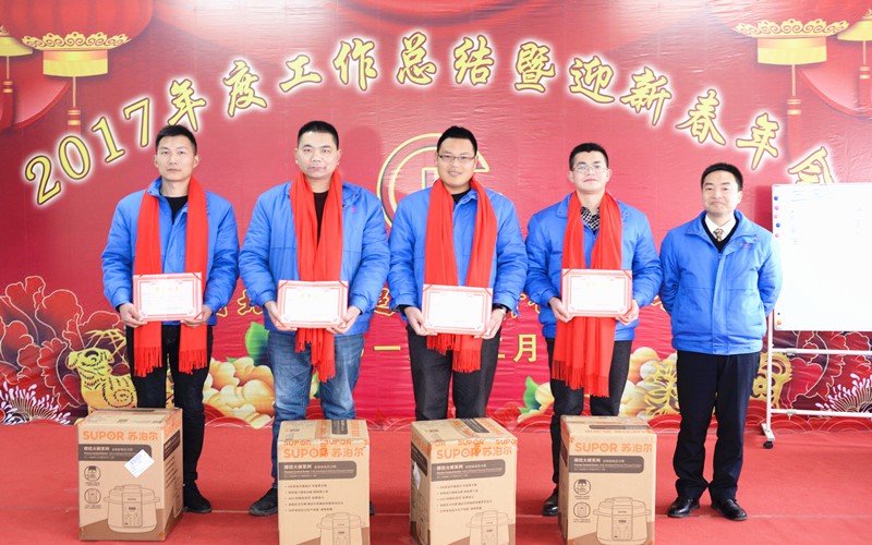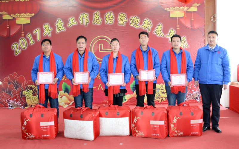 公司對(duì)于2017年度表現(xiàn)優(yōu)異做出突出貢獻(xiàn)的優(yōu)秀員工和優(yōu)秀部門進(jìn)行表彰。公司各部門領(lǐng)導(dǎo)分別為43位優(yōu)秀員工頒發(fā)證書和獎(jiǎng)品;顧總、李總分別為“質(zhì)量之星”、“創(chuàng)新之星”、“銷售之星”、“服務(wù)之星”頒發(fā)證書并贈(zèng)送獎(jiǎng)品;顧總經(jīng)理分別為公司優(yōu)秀管理獎(jiǎng)獲得者頒發(fā)榮譽(yù)證書和獎(jiǎng)品;接下來,獲得湖北昌利超硬材料有限公司的年度優(yōu)秀單位——生產(chǎn)部代表上臺(tái),由龍董事長(zhǎng)親自頒獎(jiǎng)。