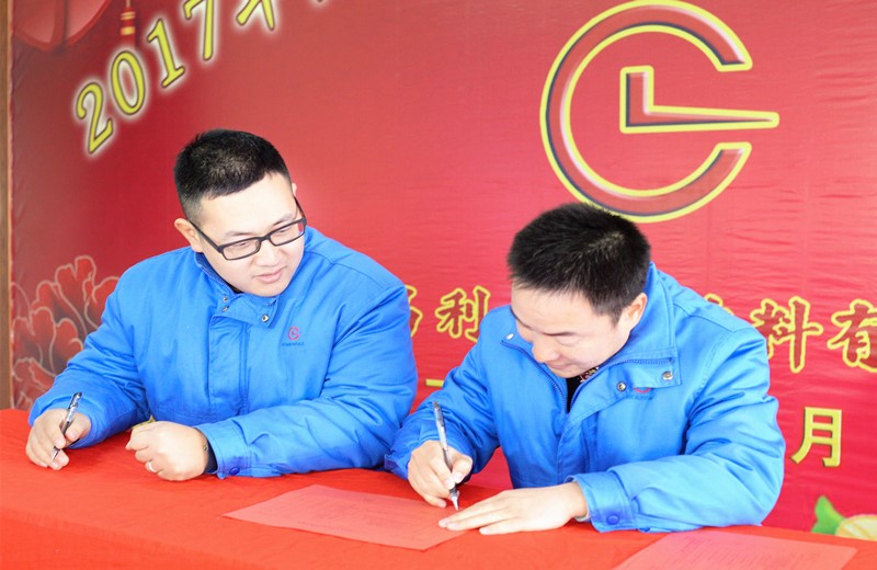 湖北昌利公司各部門負(fù)責(zé)人跟總經(jīng)理簽訂2018年度工作目標(biāo)及考核責(zé)任狀。昌利公司在2017年的工作中穩(wěn)中有進(jìn),進(jìn)中有變,變中向好,取得這樣可喜的成績(jī),更為2018年的發(fā)展堅(jiān)定了信心,振奮了士氣,凝聚了力量,一路向著目標(biāo)奮進(jìn)。