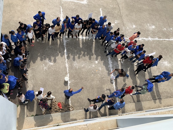 比賽期間,公司操場(chǎng)上熱鬧非凡,加油聲、吶喊聲此起彼伏。比賽中,選手們充分利用道具,想方設(shè)法節(jié)省時(shí)間,你追我趕,比賽非常激烈。其中“千里傳珠賽”,特別考驗(yàn)參賽選手們的個(gè)人身體素質(zhì)和團(tuán)隊(duì)協(xié)作能力。